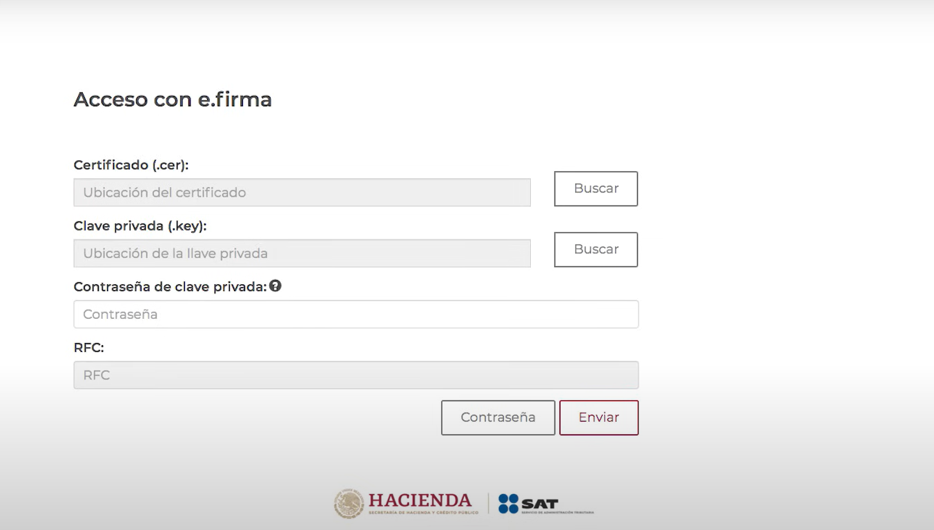 ⚠️ IMPORTANTE: Debes ingresar con el archivo .cer, el archivo .key y la contraseña de tu e.firma que ha expirado
