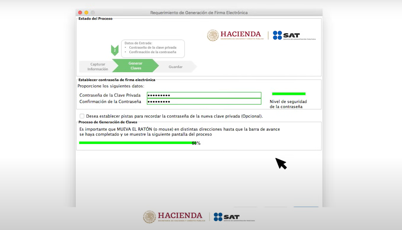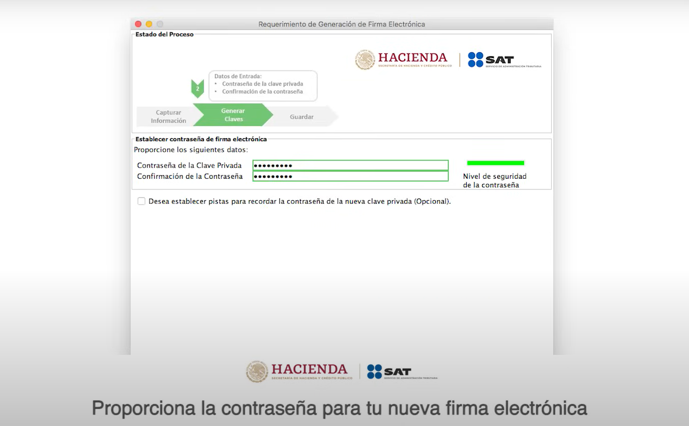 Crea y confirma una contraseña para tu nueva e.firma
