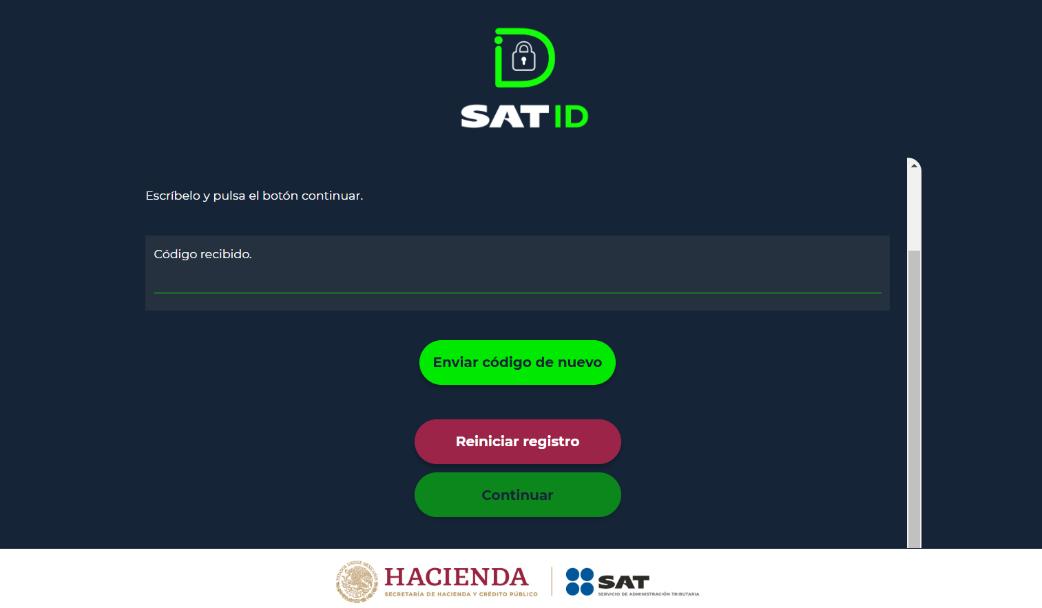 3. Recibirás un código de verificación en tu correo o teléfono. Ingrésalo en la pantalla correspondiente.
