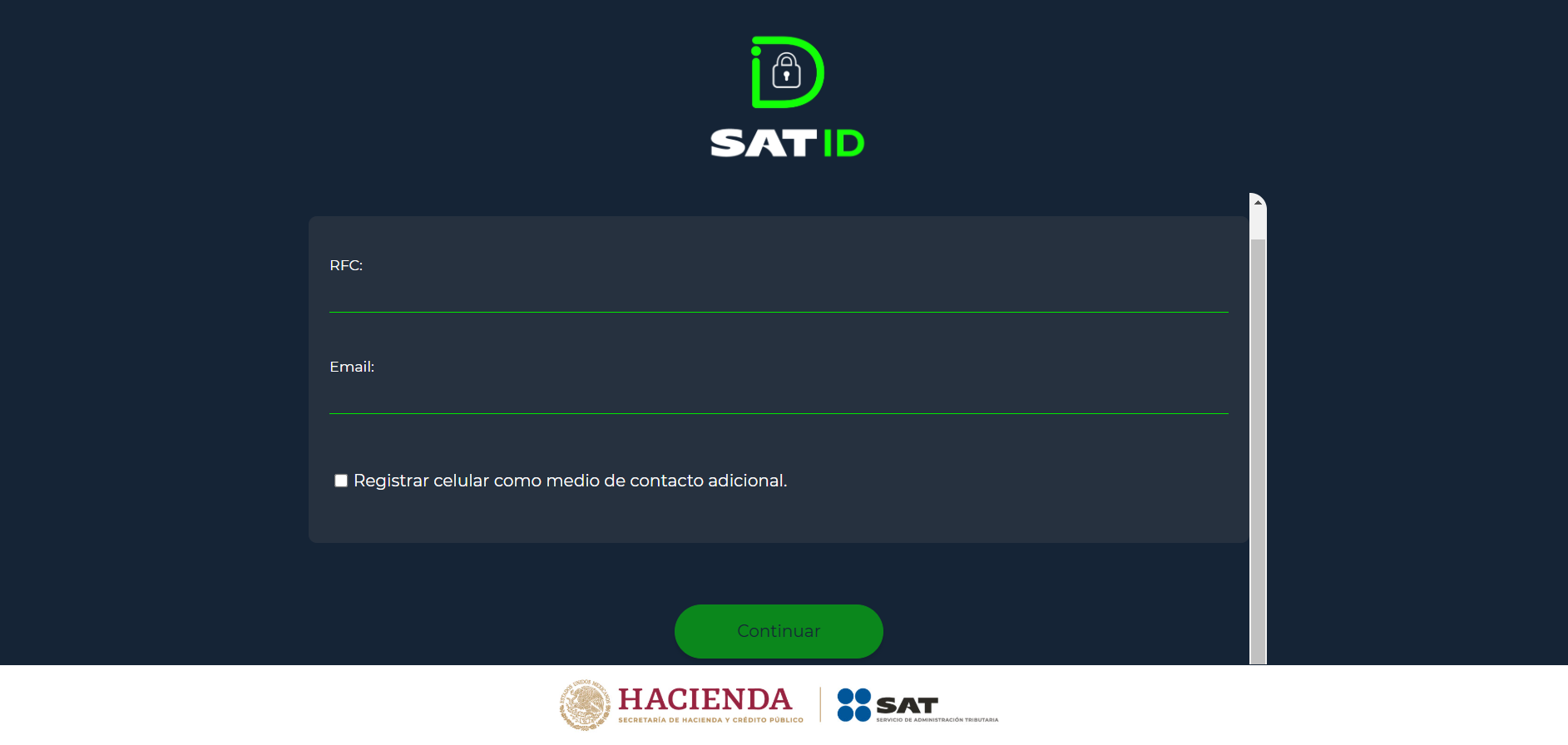 2. Después de aceptar los términos y condiciones, proporciona tu RFC y un correo electrónico.