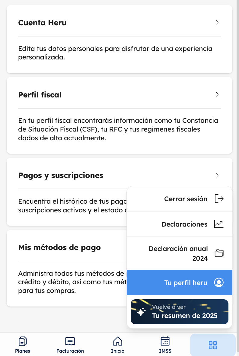 Cuando hayas ingresado, podrás hacer clic en "Tu perfil heru" y seleccionas "Perfil fiscal"